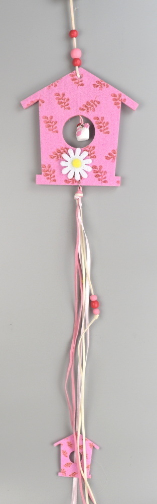 Závěsná dekorace domeček z flízu, barva růžová. pročitati sve
