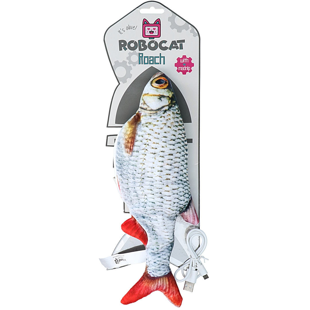 Hračky Robocat jsou jedinečné díky svému vzhledu, který je opravdu k nerozpoznání oproti živým rybám. Tyto hračky naplněné Madnipem zajišťují, že kočičí instinkty jsou posunuty za hranice možností. Mrskající se ryba na souši nenechá žádnou domácí šelmu v klidu.
