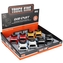 Nákladní automobil má funkci pull&back, takže po dotažení kol pokračuje v jízdě. Je dostupné ve čtyřech barevných provedeních. Rozměry produktu jsou 12x7x5cm. Baleno v balení po 8 kusech. Cena je za 1 kus. Výrobek je určen pro děti ve věku: 3+. pročitati sve