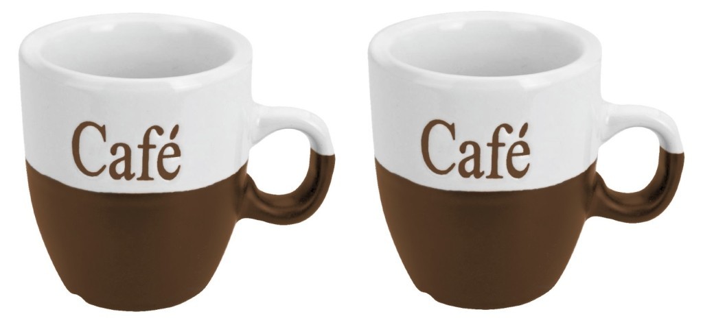sada dvou hrnků na kávu s nápisem Cafévyrobené z kameniny s lesklou glazurouvhodné do myčky nádobí i mikrovlnné troubysada obsahuje 2 hrnkyobjem hrnečku: 150 mlhorní průměr: 6,7 cmvýška: 7,5 cmbarevné provedení: bílá / hnědá pročitati sve