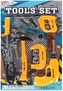 Set nářadí, obsah sady je ruční pila, kleště, šroubovák + vrtací nástavec, deska, 2x šrouby, 2x matice na šrouby, kladivo, klíč, šroubovák, svěrák. Rozměry balení jsou 29x43x4cm. Výrobek je určen pro děti ve věku: 3+. pročitati sve