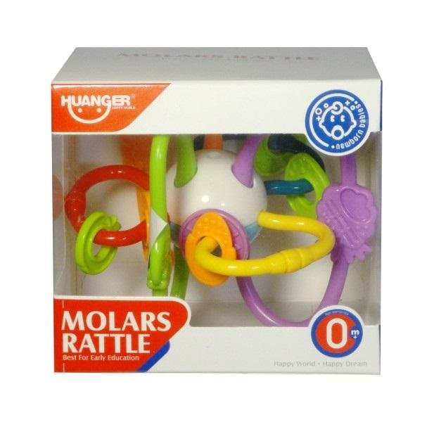 Zabawka grzechotka dla dzieci. Zabawka posiada poręczne dla dzieci uchwyty co oddziałuje u nich na zmysł dotyku. Zabawka ma także, kolorowe elementy co oddziałuje na zmysł wzroku u dzieci. Produkt zapakowany w kartonowe opakowanie. pročitati sve